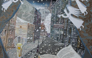 На акварельном полотне идёт вышитый снег, писанная красками маска приподнимает кружевной занавес, тканые бабочки кружатся над нарисованным альбомом, расшитом фотографиями. Вышивание по холсту и акварельное шитьё – так называют работы Марины Принцевой.