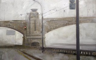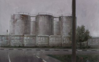 Работы на выставке — результат моего интереса к видимой трансформации реальности. Природа сама создаёт приём: туман придаёт инопланетный вид картине, зритель перестаёт обыденно считывать окружающую действительность, замедляется время. Эффект тумана дематериализует предметы, лишает их веса, смещает присущие им смыслы. Выбранные сюжеты не объединены темой, не имеют прямой связи друг с другом. Здесь пейзажи предполагаемые, как бы спроецированные. Водонапорные вышки, заброшенная силосная башня, столбы электропередач, рекламный щит — всё это лишь отпечатки на холсте. “Недопроявленность” фиксации — так можно определить авторскую идею. Сквозь тонкий пергамент тумана просачиваются лишь отголоски реальных страстей, не более. Индустриализация обернулась чередой ржавых каркасов. Электрификация — громадными градирнями в окне. Романтика дороги трансформировалась в бесконечное разглядывание рекламных щитов. Мосты, ангары, эстакады стали всего лишь декорацией, зыбко висящей в молочно-белой взвеси. Реальные цвета выцветают, отпадают за ненадобностью, как старая краска.