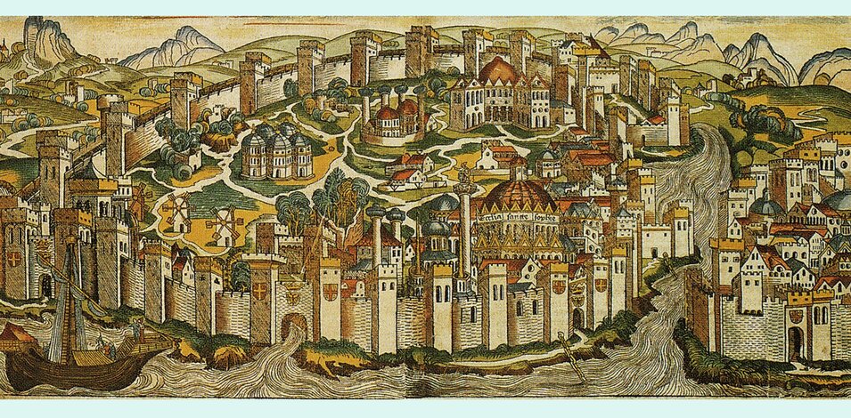 Греческий Византий, императорской волей «произведённый» в Новый Рим-Константинополь, дал имя и «лицо» империи, столицей которой оставался тысячу лет. Его руины — памятник временам могущества и славы Римской державы в эпоху христианского средневековья. Это грандиозные стены Феодосия и триумфальные Золотые ворота, форумы Феодосия и Константина, арена Ипподрома с его монументами; это стоящая рядом громада Святой Софии с мозаичными изображениями византийских царей, монастыри Студийский и Христа Хора, остатки церквей и дворцов, потрясающие своей архитектурой.