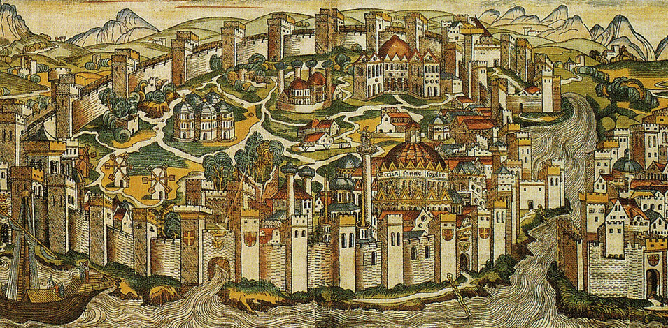 Греческий Византий, императорской волей «произведённый» в Новый Рим-Константинополь, дал имя и «лицо» империи, столицей которой оставался тысячу лет. Его руины — памятник временам могущества и славы Римской державы в эпоху христианского средневековья. Это грандиозные стены Феодосия и триумфальные Золотые ворота, форумы Феодосия и Константина, арена Ипподрома с его монументами; это стоящая рядом громада Святой Софии с мозаичными изображениями византийских царей, монастыри Студийский и Христа Хора, остатки церквей и дворцов, потрясающие своей архитектурой.